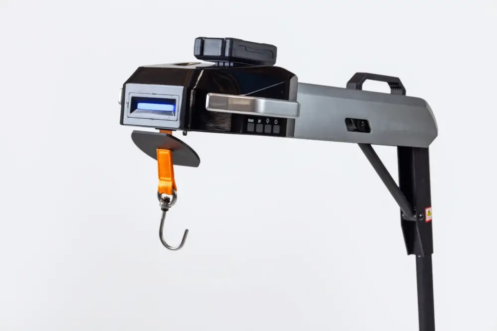• Compact, foldable design featuring a collapsible lifting arm and removable boom for travel-friendly storage